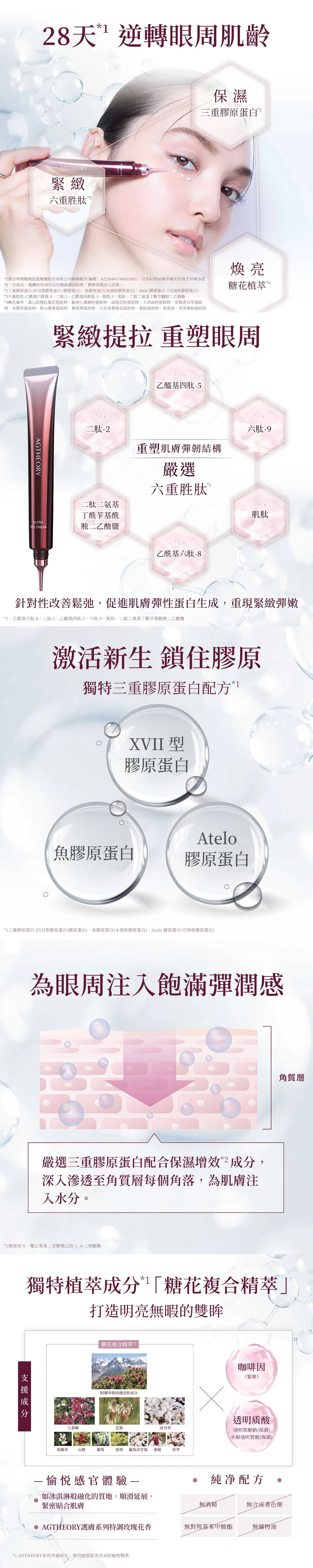同時補充三大膠原層、激活膠原新生、強韌眼周屏障,讓眼周更緊緻、明亮、柔嫩、有彈性。
