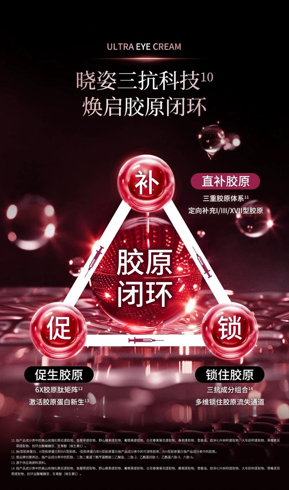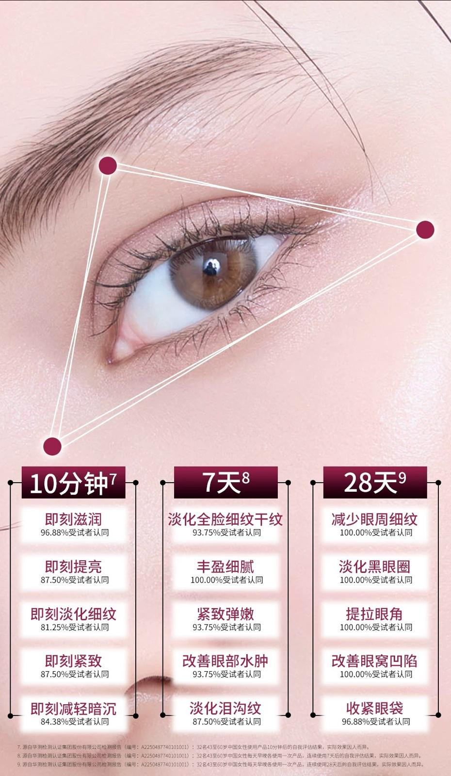 同时补充三大胶原层、激活胶原新生、强韧眼周屏障,让眼周更紧致、明亮、柔嫩、有弹性。